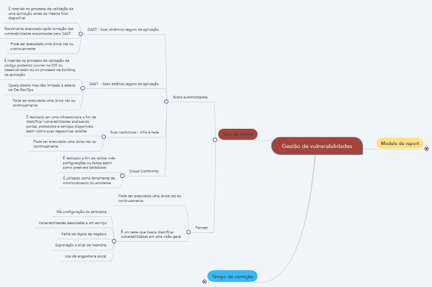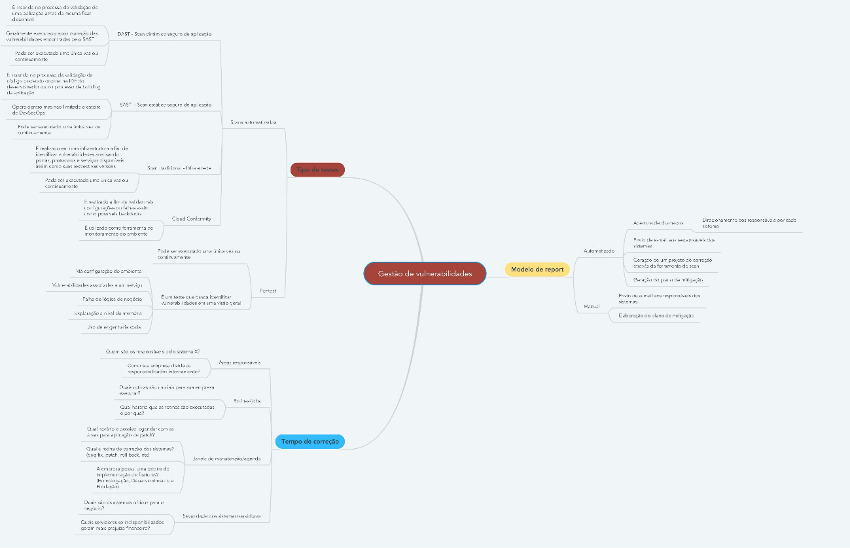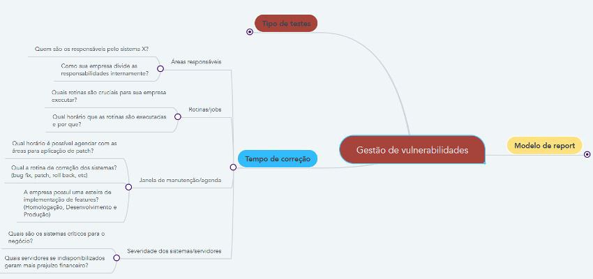 Mapa mental com as frentes do processo de gestão de vulnerabilidade